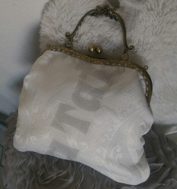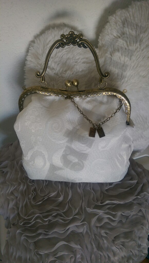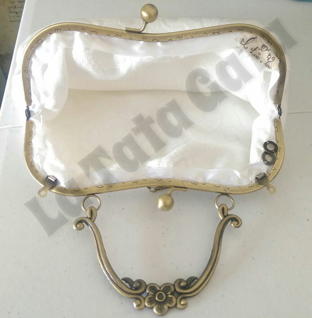 Este encargo me lo pidió una bonita gatita para lucirlo el día de su boda. Quería un bolso un poco vintage con tela brocada y boquilla de oro viejo también vintage.