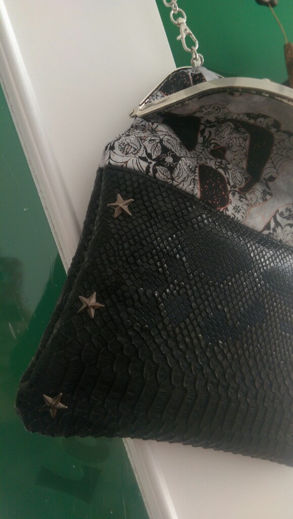 Además baila el rock and roll con mucho roll, así que creamos un bolso compañero hechizante y rockero para llevar por el mundo entero.